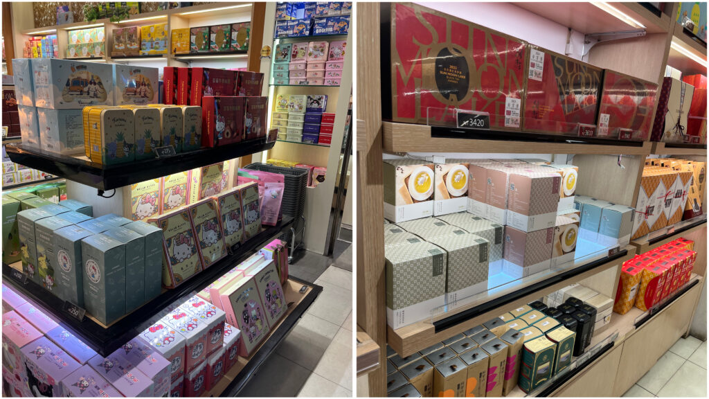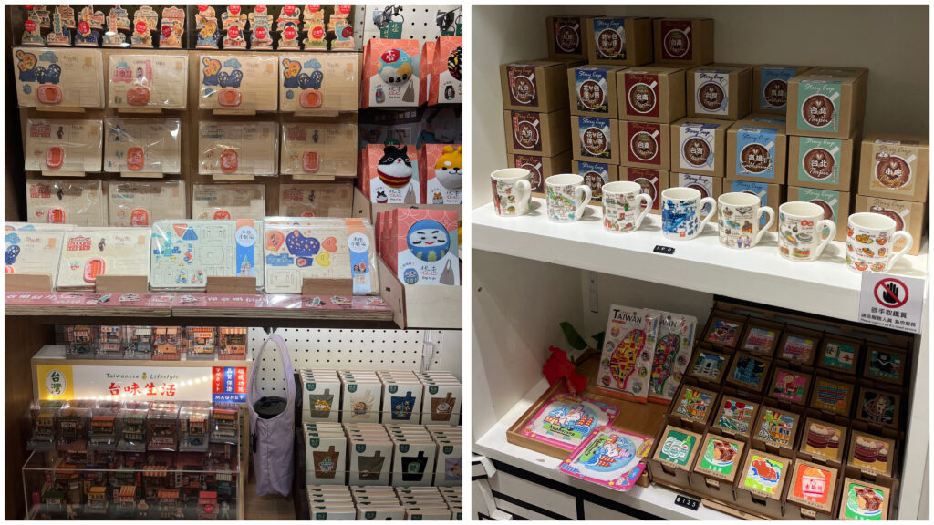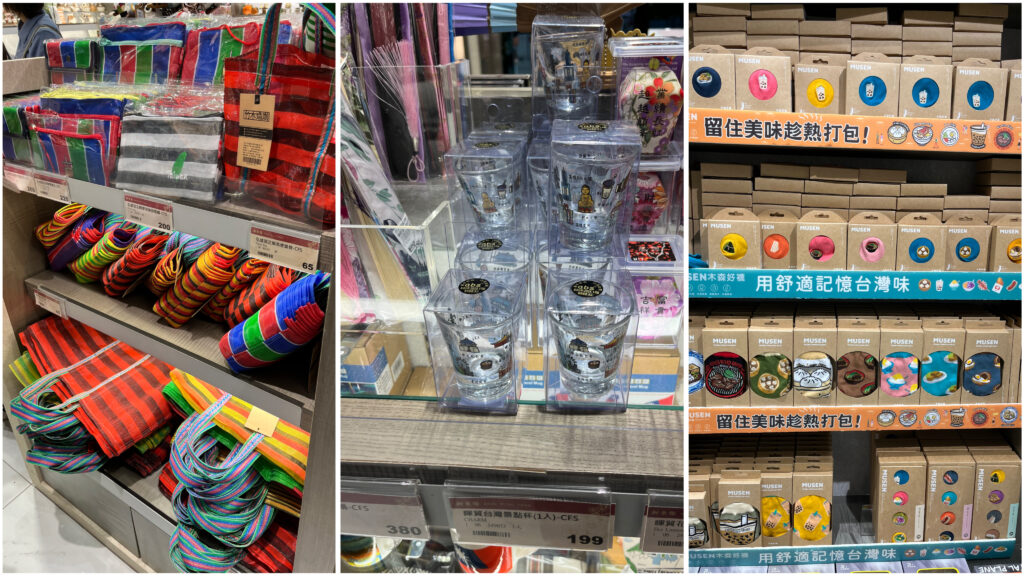店内には、パイナップルケーキやお茶などの食品はもちろん、台湾ぽい柄の靴下や漁師バッグも売っていて、買いそびれたお土産を揃えるには十分色々なものが揃っています。